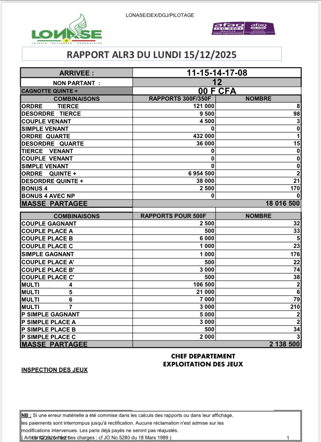 | ARRIVEE ALR3 DU 14-12-2025 : cliquer ici pour voir les gains | |